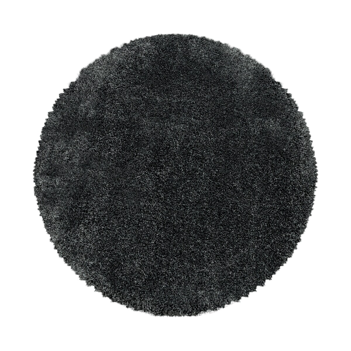 Carpetsale24 Shaggy Hochflor Teppich Anthrazit 80 cm Rund Extra Weich & Waschbar, Jute Rückseite, Einfarbig & Flauschig für Wohnzimmer & Schlafzimmer