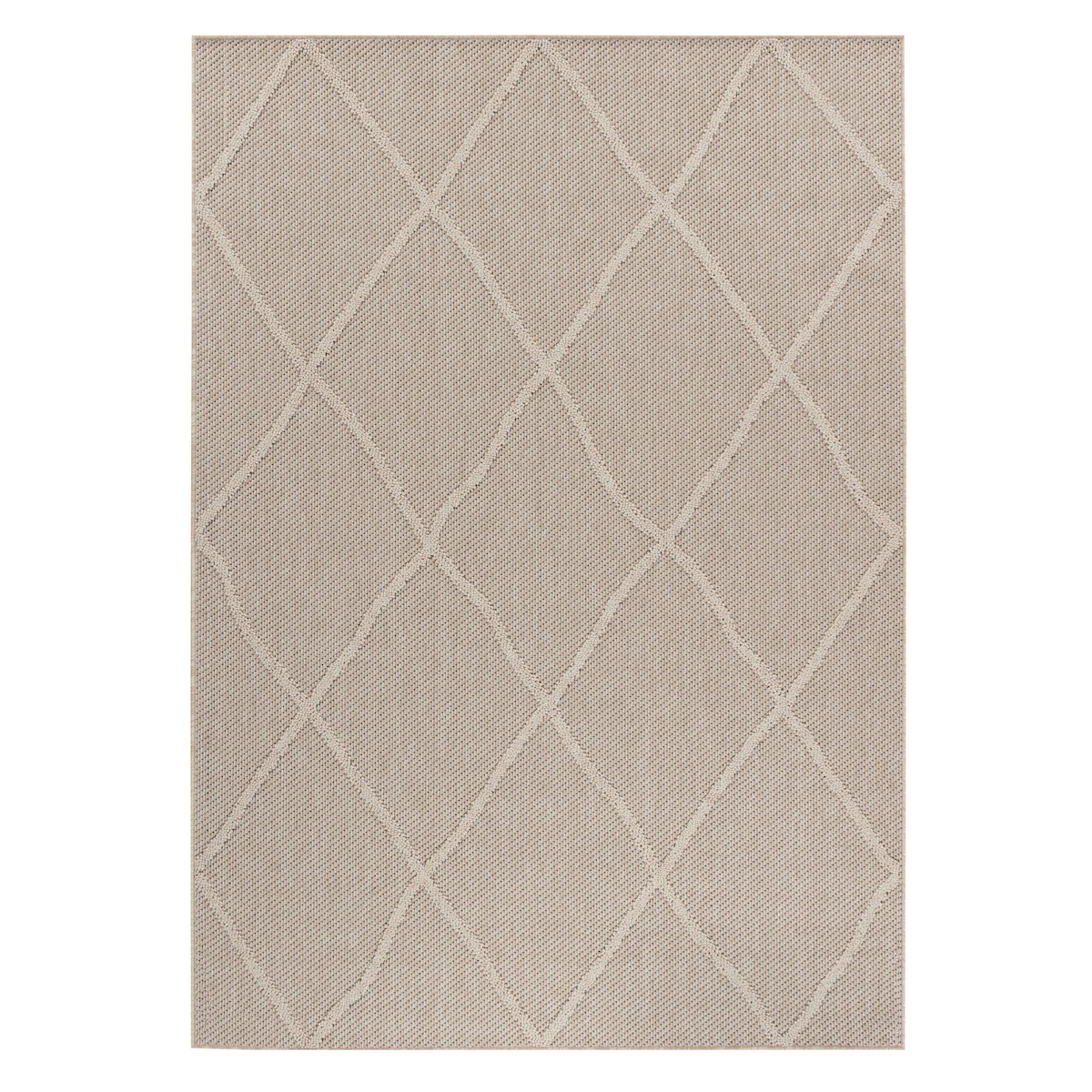 Carpetsale24 In- & Outdoor Teppich 200x290 cm – Wetterfester großer Teppich in Creme mit Rauten Design für Küche, Wohnzimmer