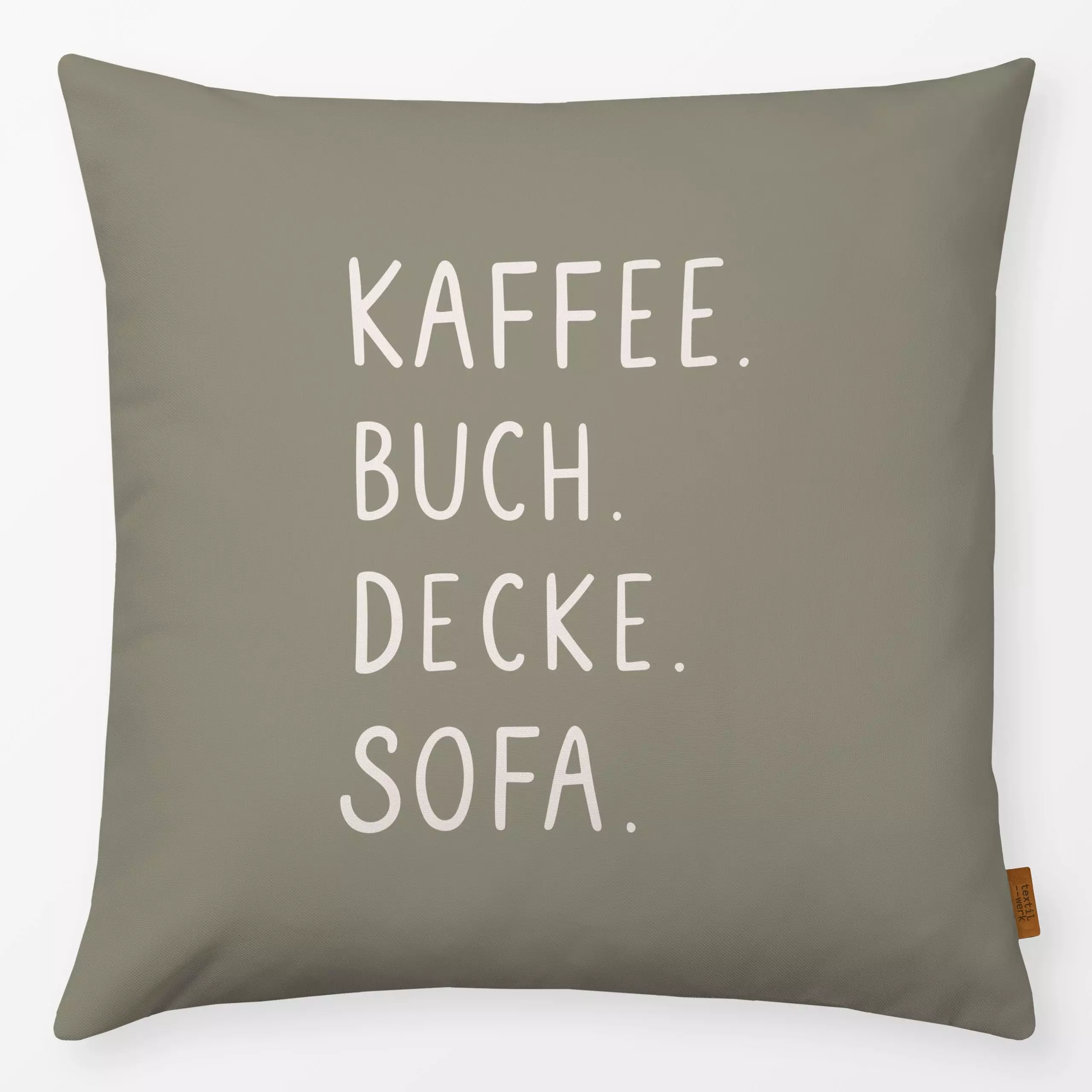 Kissen Kaffee Buch Decke Sofa Grün - Herbst, Sprüche & Schriftzüge, Küche, Essen & Trinken - von „Kathrin Woo"; Kaffee, mode...