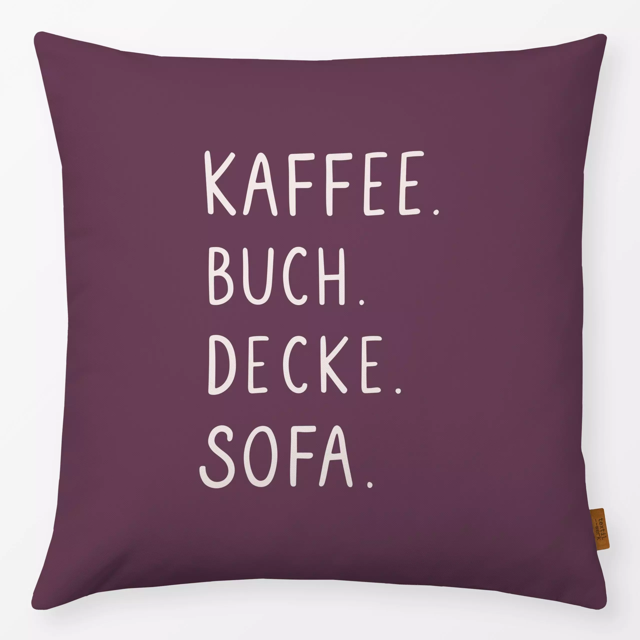 Kissen Kaffee Buch Decke Sofa Pflaume - Herbst, Sprüche & Schriftzüge, Küche, Essen & Trinken - von „Kathrin Woo"; Kaffee, m...