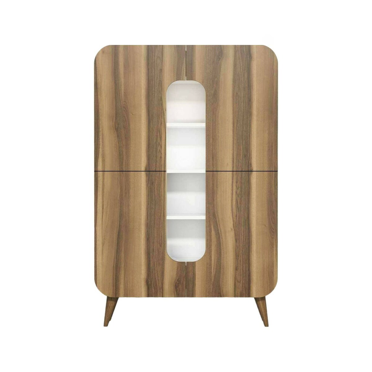 Kommode Dgiavard, Wohnzimmerbuffet, Wohnzimmer-Sideboard, Moderne Küchen-Speisekammer, 90x32h132 cm, Walnuss und Weiß