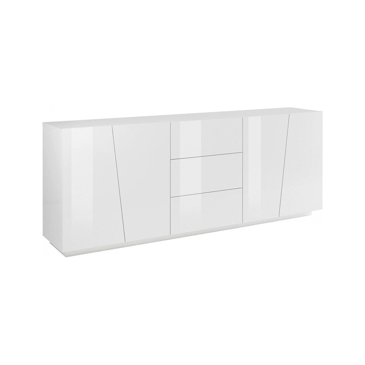 Dmora Kommode Sven, Küchen-Sideboard mit 4 Türen und 3 Schubladen, Wohnzimmer-Buffet, 100 % Made in Italy, cm 220x43h86, glänzend weiß