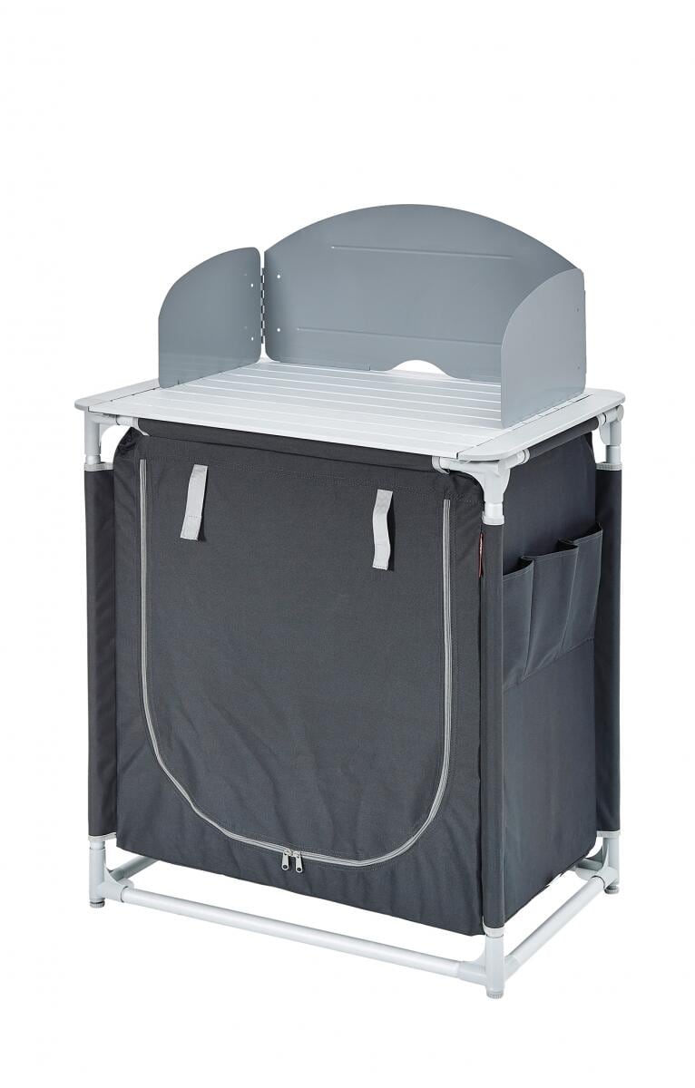 TolleTour Campingküche Küchenbox Alu Spritzschutz Windschutz mit Faltmechanismus Faltbar Klappschrank 2 Fächer