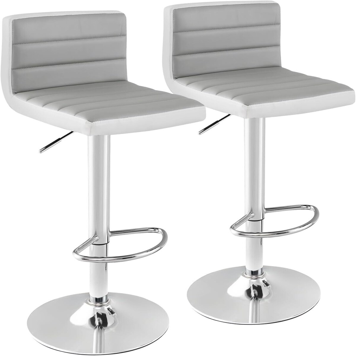 Fortuna Lai Barhocker-Set 2 drehbare Küchenhocker höhenverstellbar mit Fußstütze in Lederoptik und Metallrahmen 44 x 49 x 90-110 cm Grau | .de