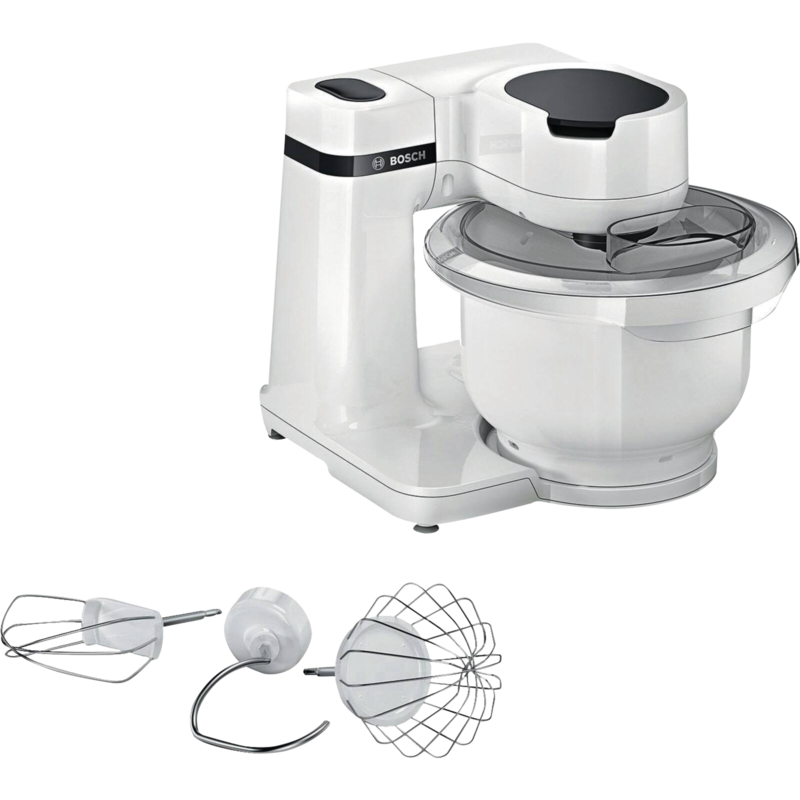 Bosch MUMS2AW00 MUM Küchenmaschine, 700 W, 4 Geschwindigkeitsstufen, Soft-Start, 3D Planetary mixing, weiß