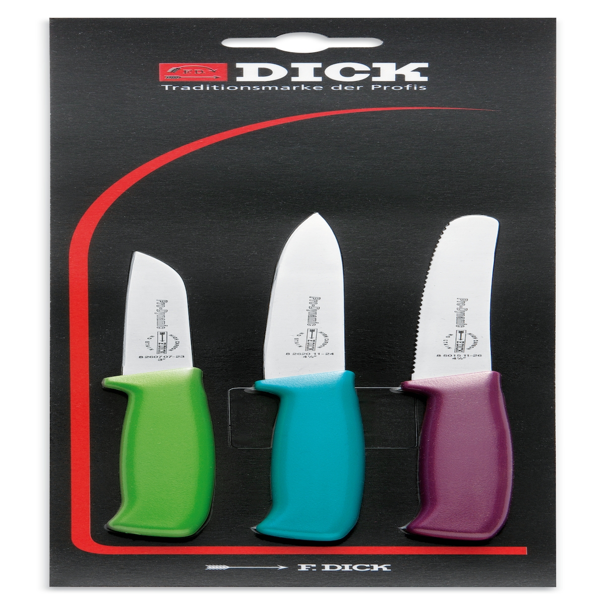 F. DICK Küchenmesser-Set ProDynamic 3-teilig (je 1x Küchenmesser mit/ohne Wellenschliff, 1 Schälmesser) 85700042