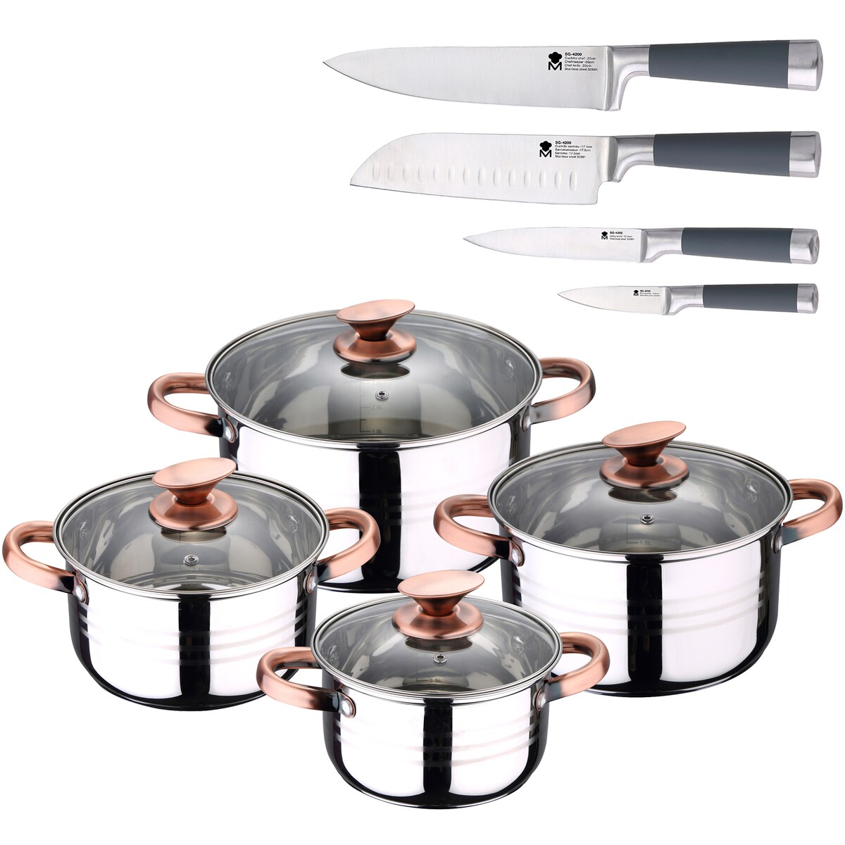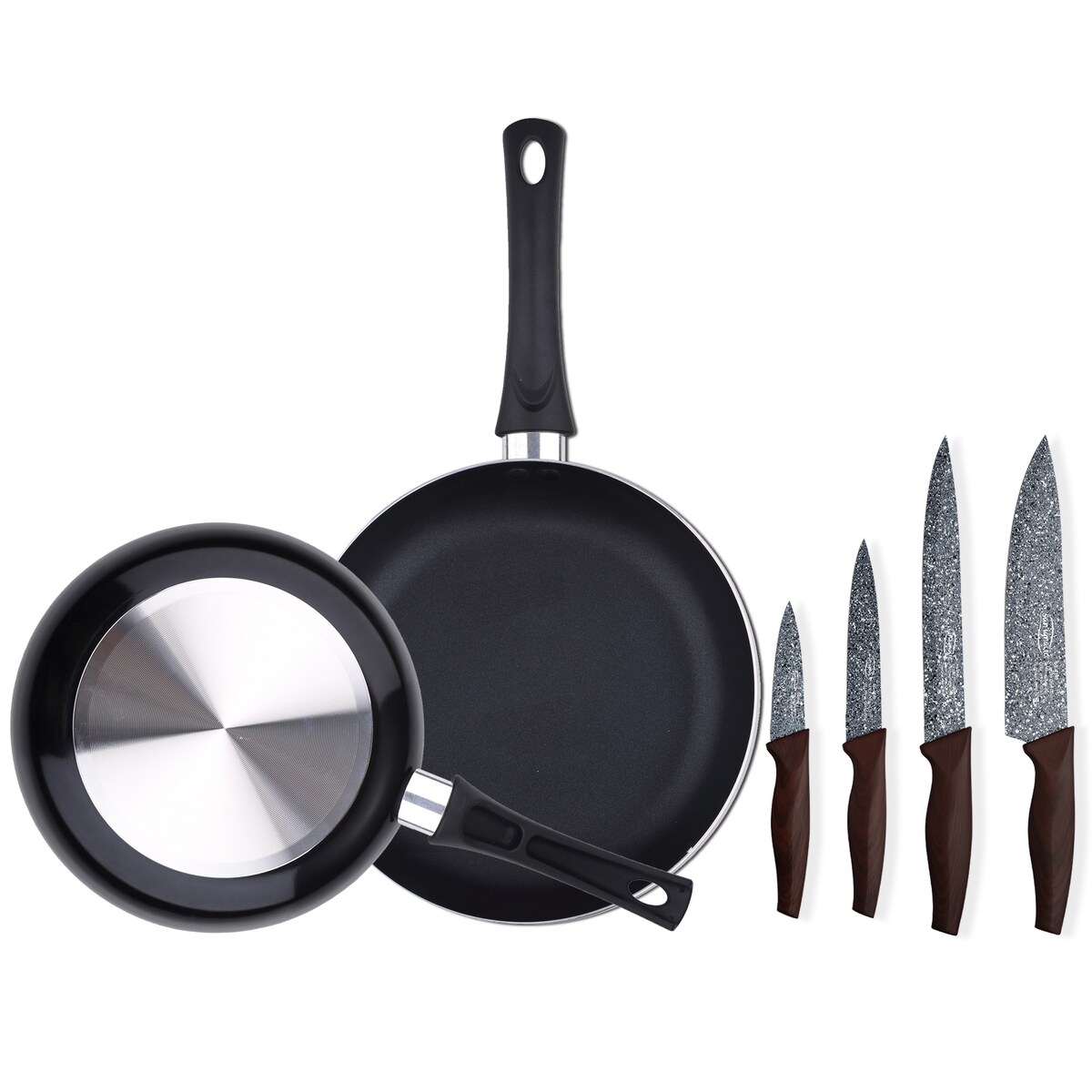 Chef Sauce - 2er Set Pfannen Ø20/Ø24 cm mit 4er Set Küchenmesser aus gepresstem Aluminium mit doppelter Antihaftbeschichtung