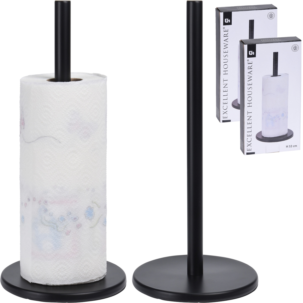 2x Küchenrollenhalter Küchenrolle Edelstahl 32cm Stehend Ständer Küche Papierhalter Schwarz