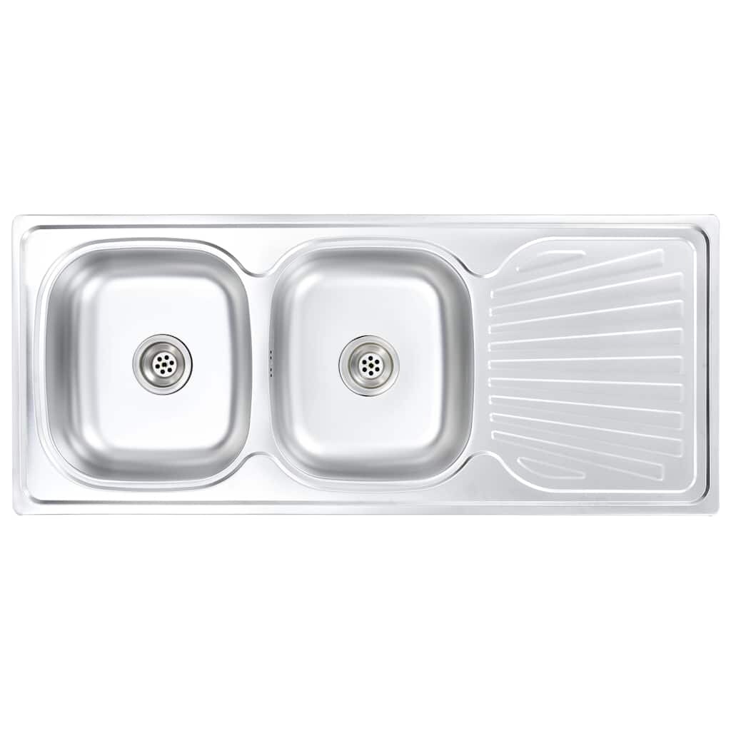 vidaXL Küchenspüle Doppelbecken Edelstahl