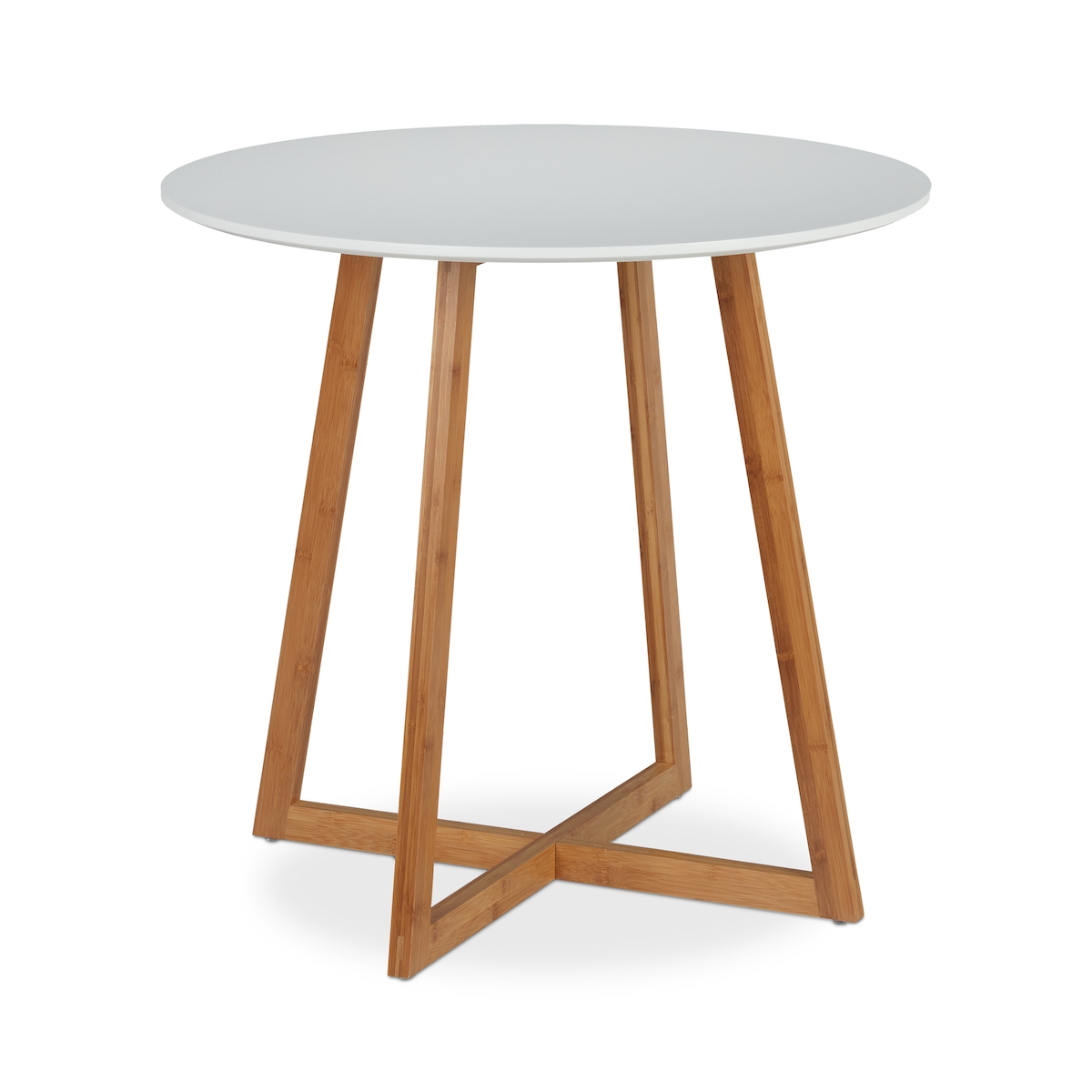 Relaxdays Esstisch rund, skandinavisch, Kreuzbeine, 2 Personen, aus Bambus & MDF, Küchentisch, HxD 75x80 cm, weiß/natur
