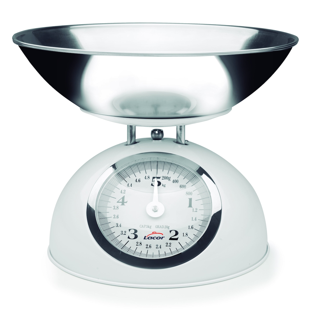LACOR 5Kg Retro White Mechanise Waage M/Schale, Küchenwaage, 25 x 23 x 15