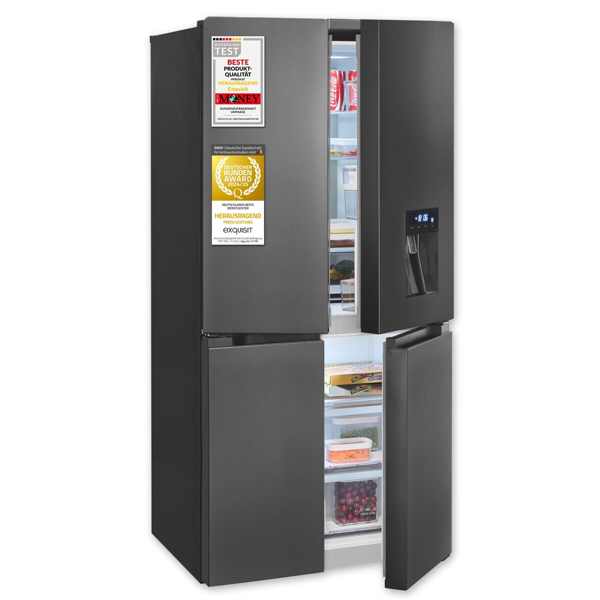 Exquisit Multidoor Kühlschrank, 432 Liter, Standgerät, Kühl- & Gefrierkombination, LED, leise, MD430-100-WS-202E inoxlook-az