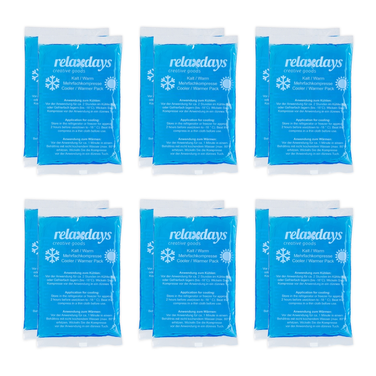 Relaxdays Kühlpads, 12er Set, Kalt-Warm-Kompressen, 9 x 15 cm, Kühlpacks Gel, wiederverwendbare Gelkühlkompressen, blau