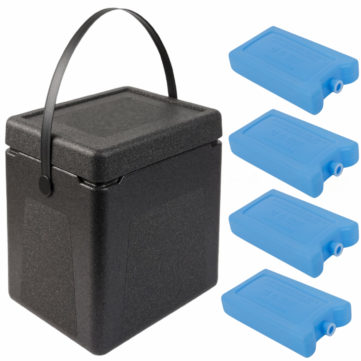 KIT FROID - Kühlbox mit Tragegriff 20L aus schwarzem Polypropylen EPP/PPE - Öffnung von oben + 4 Kühlpacks 400g