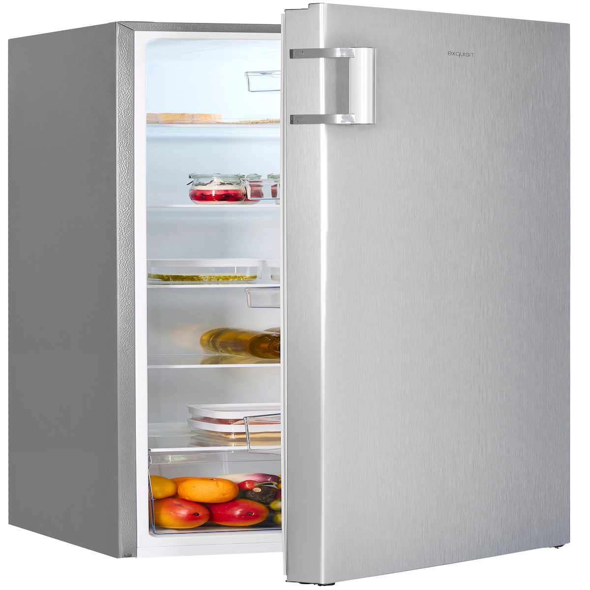 Exquisit Kühlschrank mit Gefrierfach, 107 Liter, kleiner Kühlschrank, 4-Sterne-Gefierfach, Kompakt, Freistehend, KS516-4-051C inoxlook-az