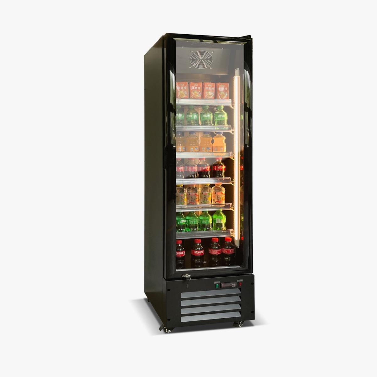 Gastro-Cool DC400 Getränkekühlschrank 400 Liter mit Werbedisplay schwarz/schwarz, LED | Gastro Kühlschrank | Flaschenkühlschrank | Kühlschrank