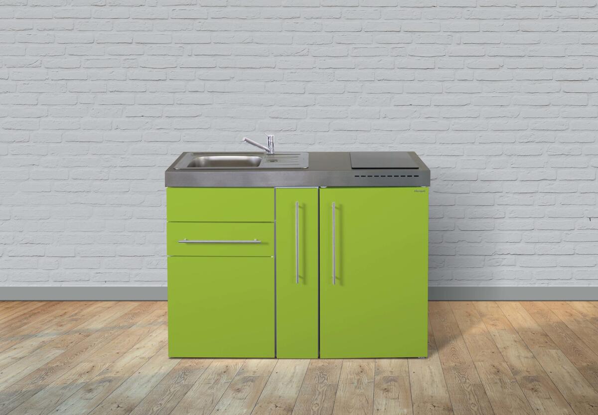 Stengel MP 120 A Miniküche, 120cm breit, Induktionskochfeld, Kühlschrank mit Gefrierfach, Spüle links, apfel grün (10120 102681 13)
