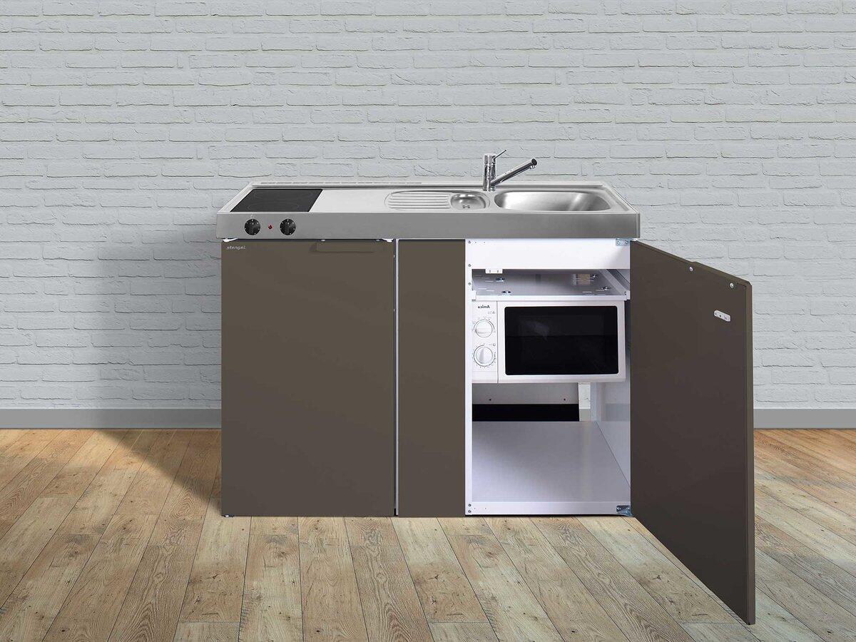 Stengel MKM 120 Miniküche, 120cm breit, mit Elektrokochfeld, Kühlschrank mit Gefrierfach, mit Mikrowelle, Spüle rechts, mokka metallic (11120 011011 1