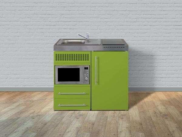 Stengel MPM 100 Miniküche, 100cm breit, Induktionskochfeld, Kühlschrank mit Gefrierfach, mit Mikrowelle, Spüle rechts, apfel grün (10100 010671 13)