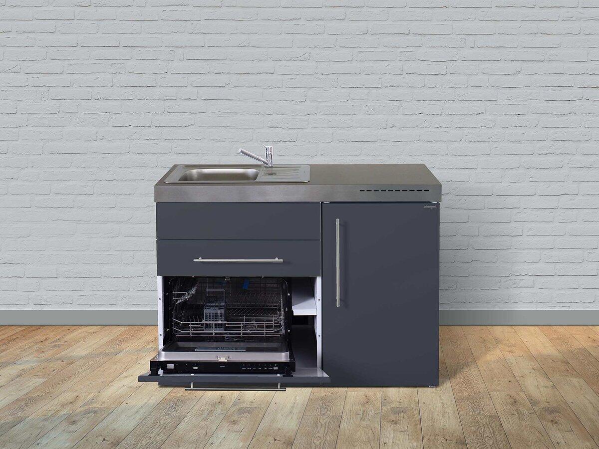 Stengel MPGS 120 Miniküche, 120cm breit, Glaskeramikkochfeld, Kühlschrank mit Gefrierfach, Geschirrspüler 6 Maßgedecke, Becken rechts, schiefergrau (1