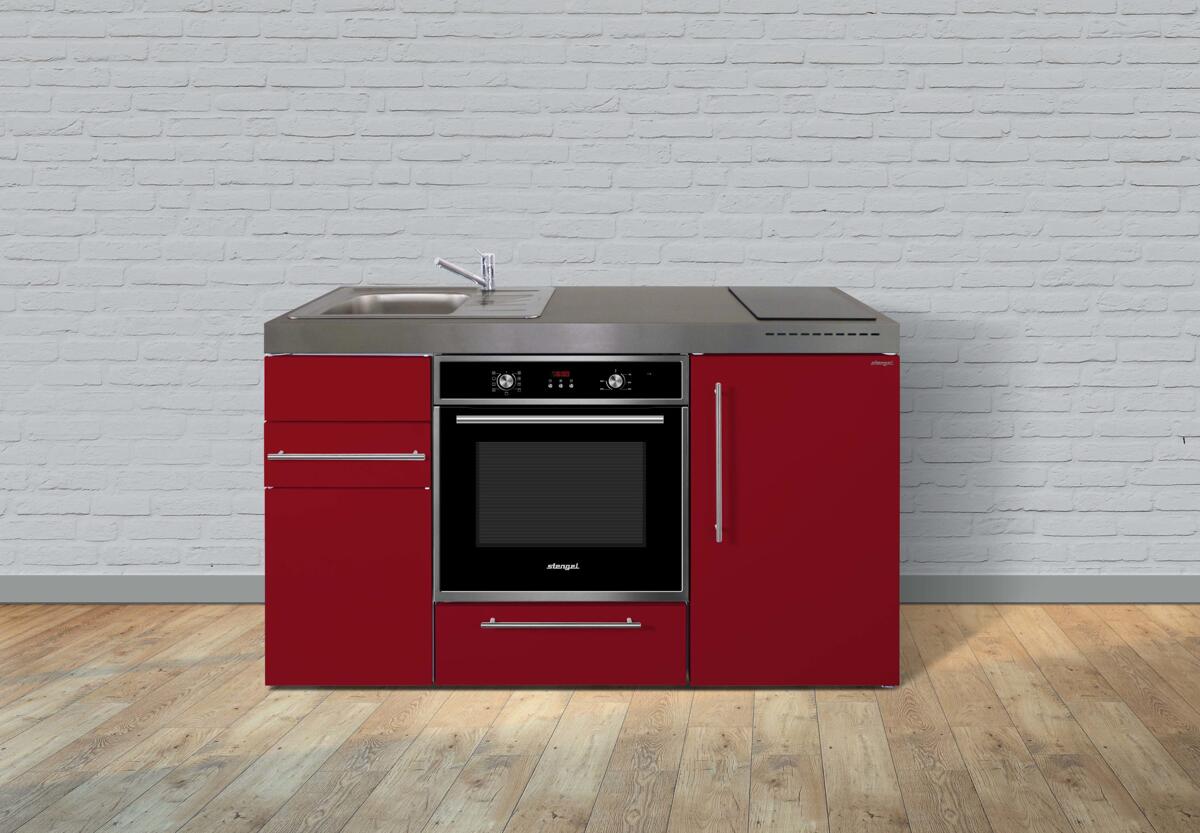 Stengel MPB 150 Miniküche, 150cm breit, Induktionskochfeld, Kühlschrank mit Gefrierfach, mit Backofen, Becken rechts, bordeaux rot (10150 106671 03)