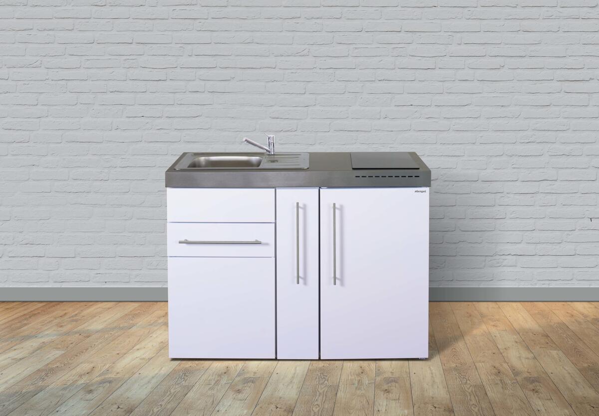 Stengel MP 120 A Miniküche, 120cm breit, Induktionskochfeld, Kühlschrank mit Gefrierfach, Spüle links, weiß (10120 102681 00)