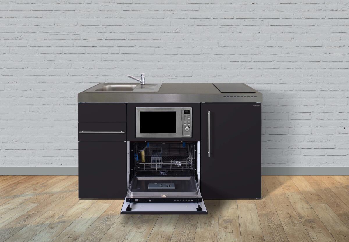 Stengel MPB 150 Miniküche, 150cm breit, Induktionskochfeld, Kühlschrank mit Gefrierfach, mit Backofen, Becken links, schwarz matt (10150 106681 12)