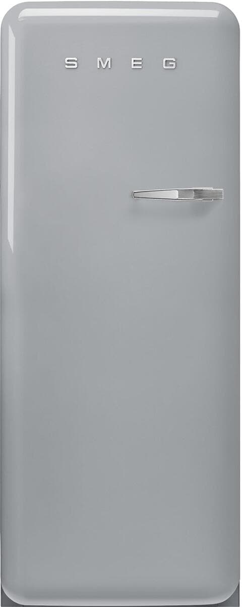Smeg FAB28LSV6 50"s Style Retro Stand Kühlschrank, 60 cm breit, 270 L, Linksanschlag, Polarsilber Metallic