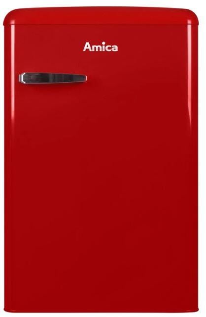 Amica KS 15610 R Retro-Kühlschrank, 55 cm breit, 87,5 cm hoch, 108 L, Automatische Abtauung, LED-Beleuchtung, Gefrierfach, chili red