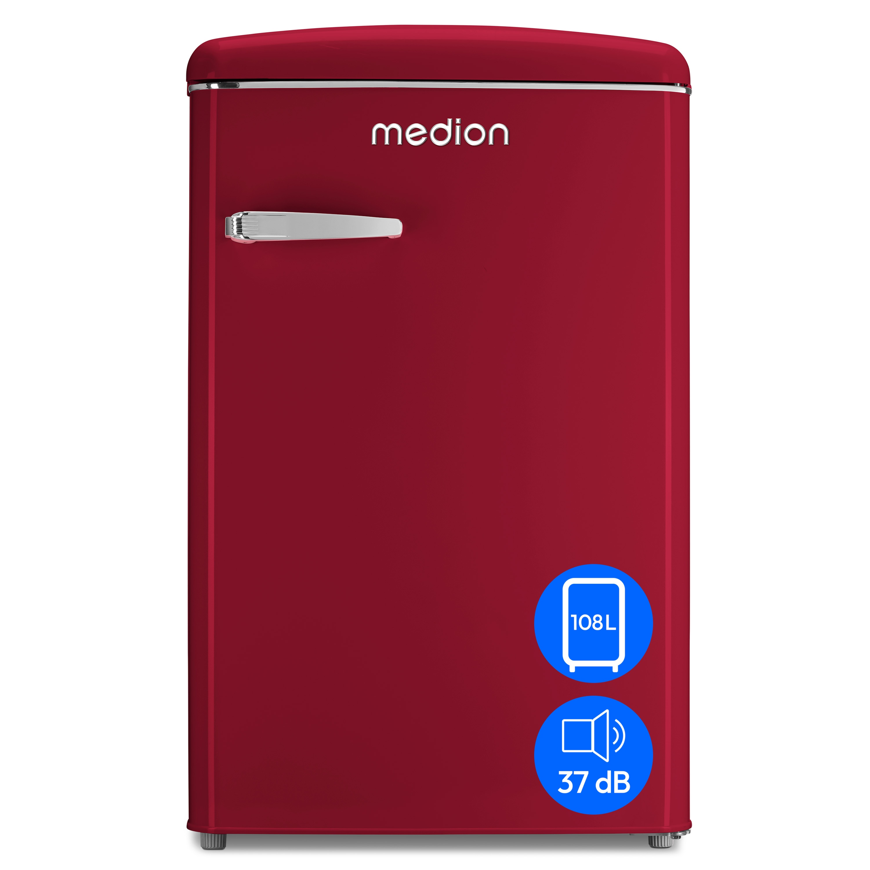MEDION Retro-Kühlschrank mit Gefrierfach MD 37790, 108 L Gesamtnutzinhalt, 37 dB, höhenverstellbare Füße, Energieeffiziensklasse D