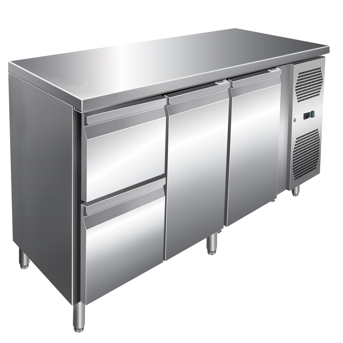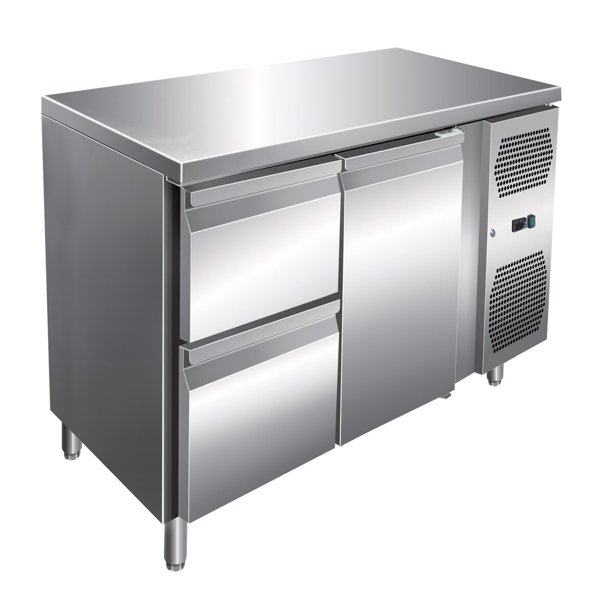 A&S polarny Gastro Edelstahl Kühltisch Kühltheke 1 Tür / 2 Schubladen 142 L -2/+8°C
