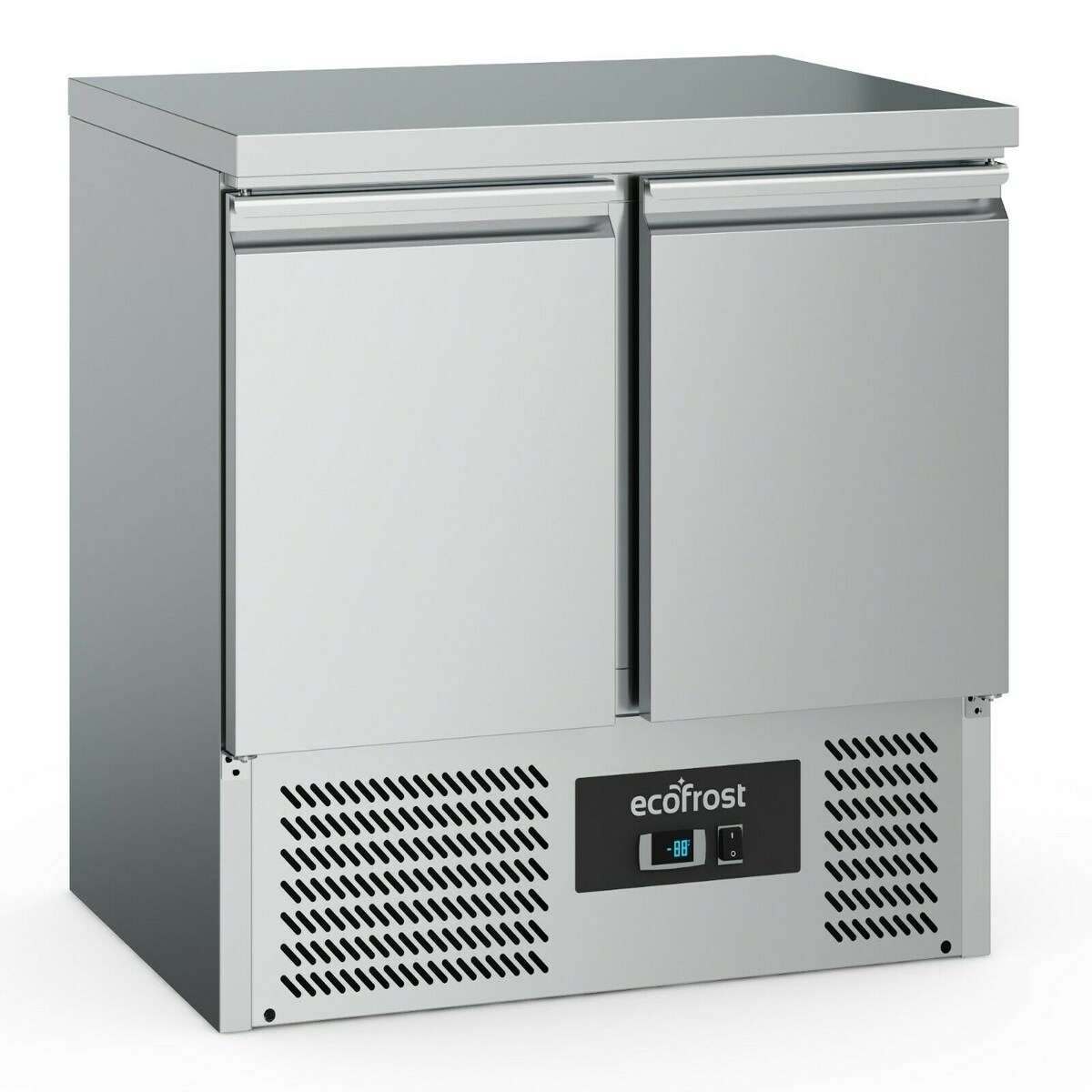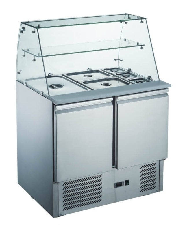 Ristoattrezzature Saladette-Kühltheke mit geradem Glas und Zwischenboden – Edelstahl – 2 Türen – 90 x 70 x 85 cm