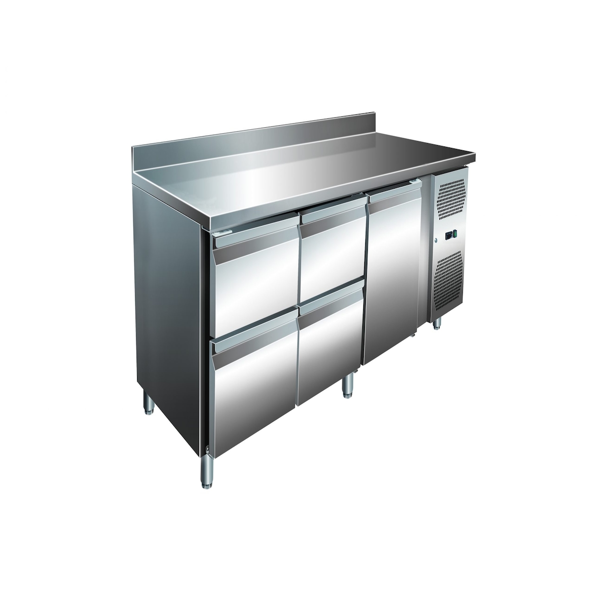 A&S polarny Gastro Edelstahl Kühltisch Kühltheke 1 Tür / 4 Schubladen 194 L -2/+8°C Aufkantung