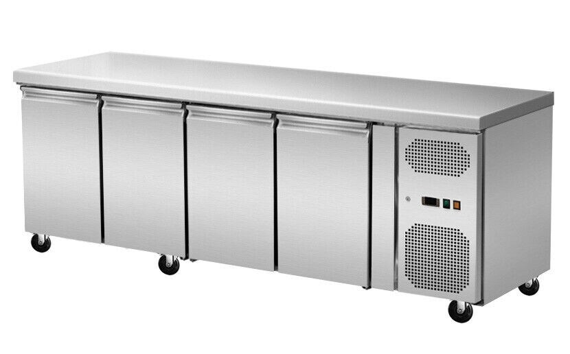 Wimar Gastro Edelstahl Kühltisch Kühltheke 4 Türen ohne Aufkantung 550 L -2/+8°C