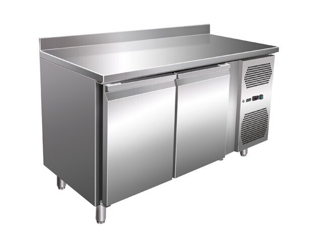 Wimar Edelstahl Kühltisch Kühltheke 2 Türen 155 L -2/+8°C Umluftkühlung Aufkantung