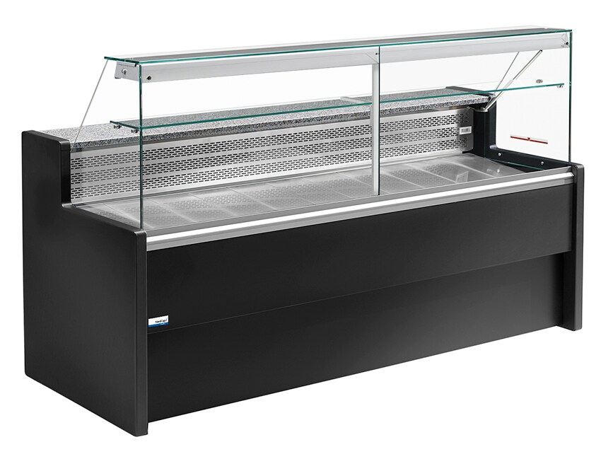 Kühltheke mit gebogenem Glas, Umluft mit Reservefach - SCHWARZ[ - ML15/B5-VV/R2]