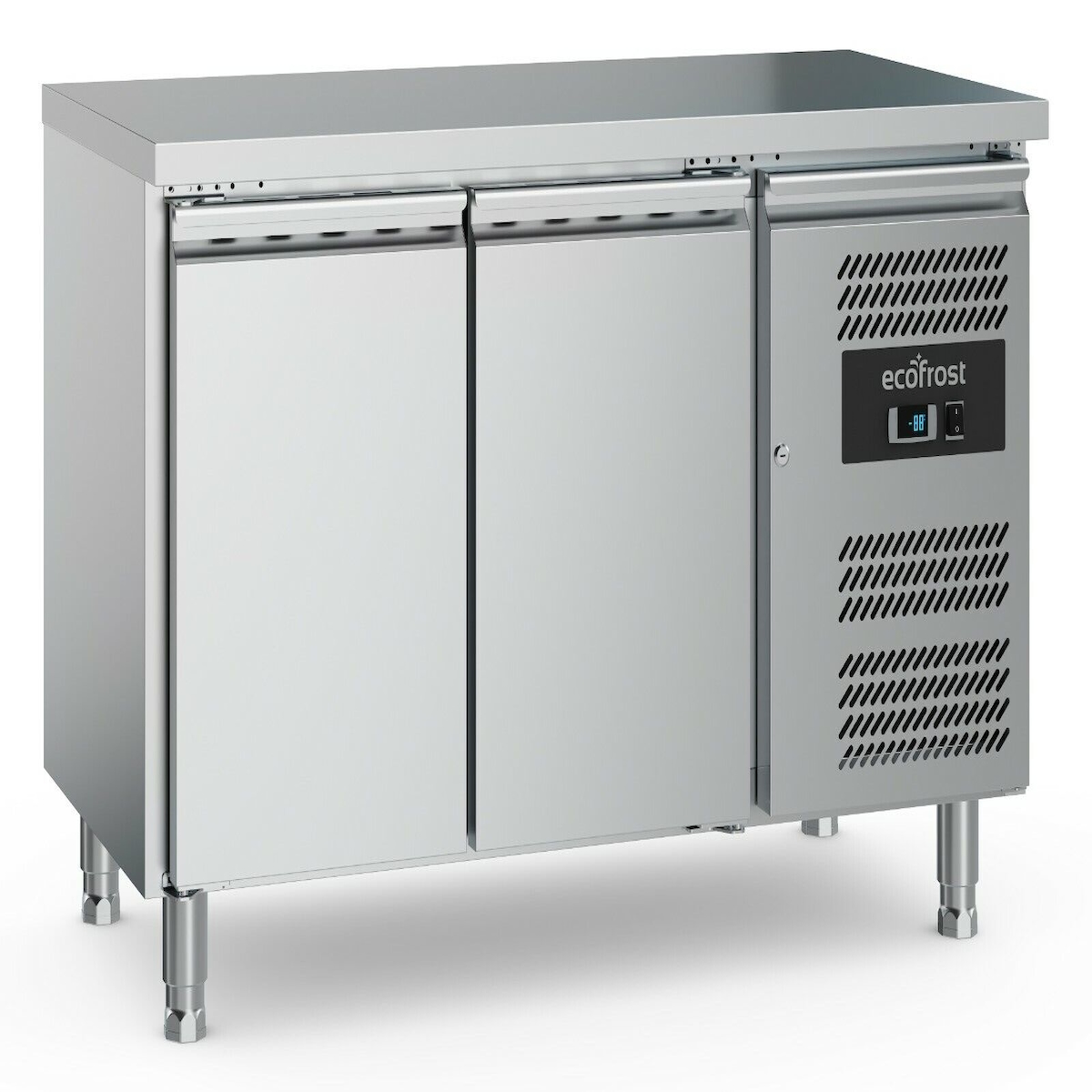 GROJU Gastro Edelstahl Kühltisch Kühltheke 2 Türen 900x700x876mm 240l 2x1/1GN +2/+8°C