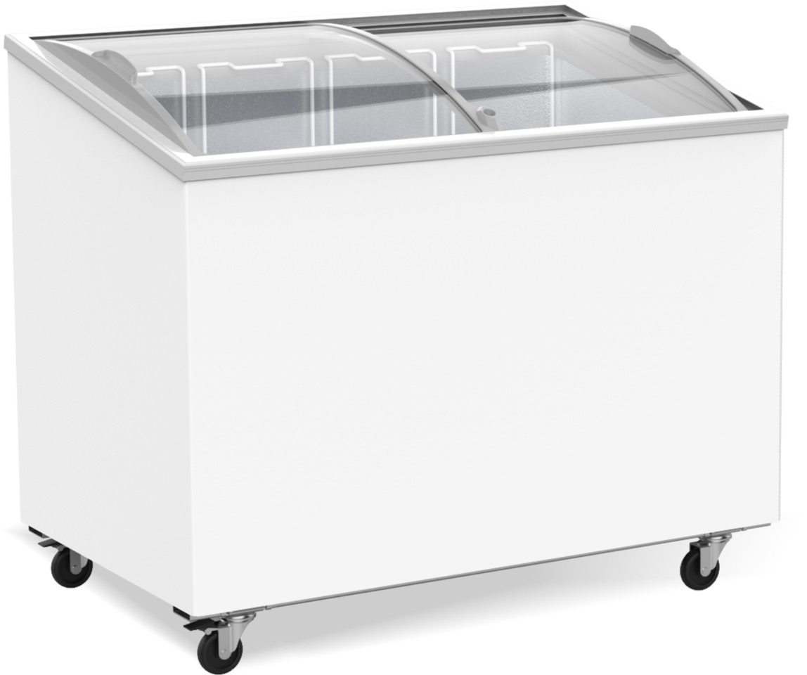 Professionelle Kühltruhe 85 cm und 220 Liter mit Glasschiebetüren. Industrielle Gefriertruhe für Bar, Restaurant und Catering.