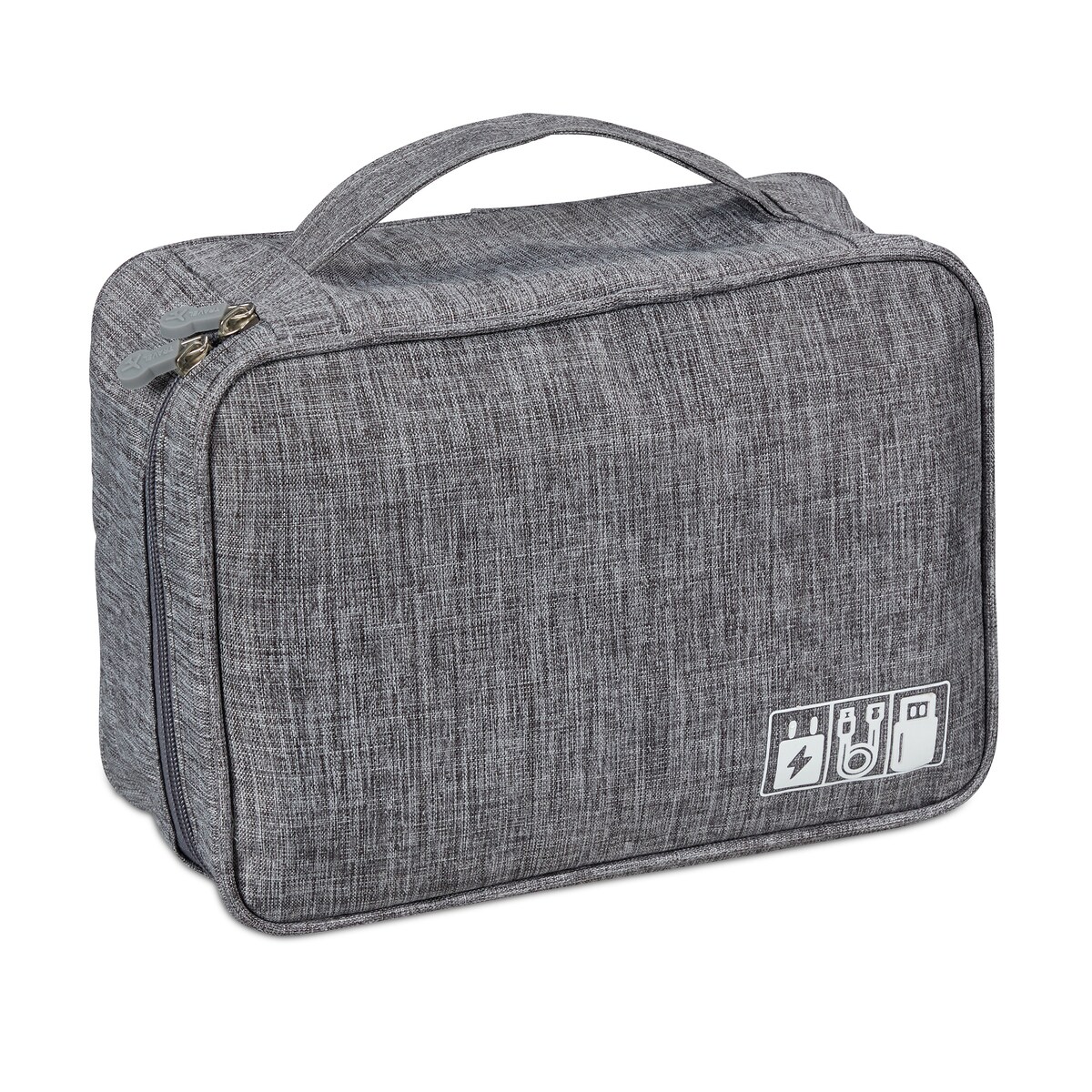 Relaxdays Kabeltasche, Organizer für Ladekabel, USB Stick, PC Zubehör, Stoff, Kabelaufbewahrung HxBxT: 11x25x20 cm, grau