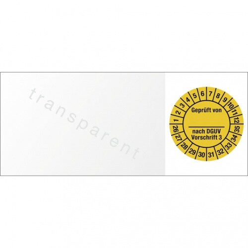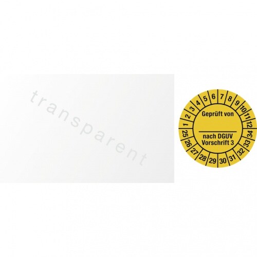 Kabelprüfplakette ab 26, geprüft nach DGUV Vorschrift 3 - Bogen = 5 Plaketten - 50 x 20 mm Folie selbstklebend