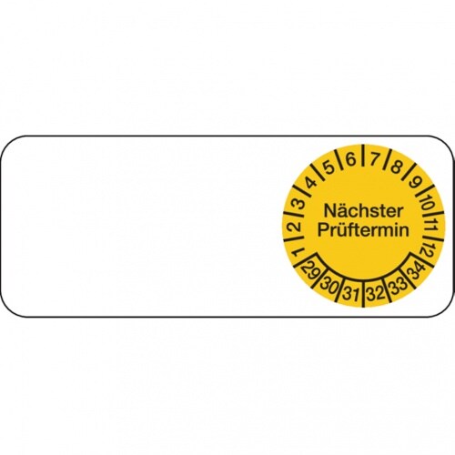 König Werbeanlagen Dreifke Kabelprüfplakette nächster Prüftermin ab 29 gelb/sch - 50x20 mm Folie selbstklebend