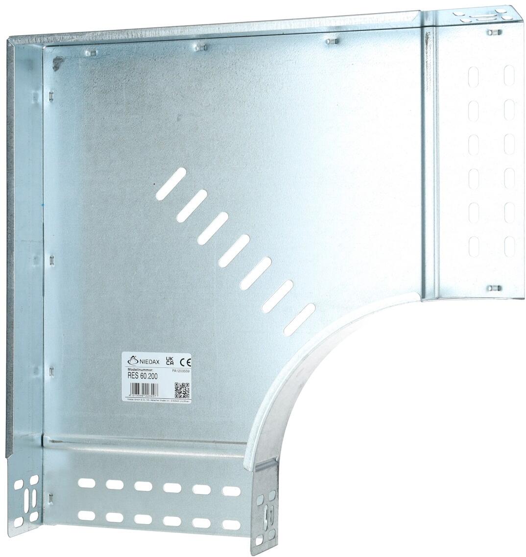 Niedax RES60.200 Bogen für Kabelrinne 90°, 60x202 mm, mit ungelochten Seitenholmen, bandverz.