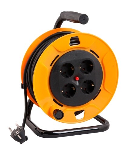 Kabeltrommel 25m, Kabelrolle mit 4 Steckdosen, H05VV-F 3G1,5mm2.