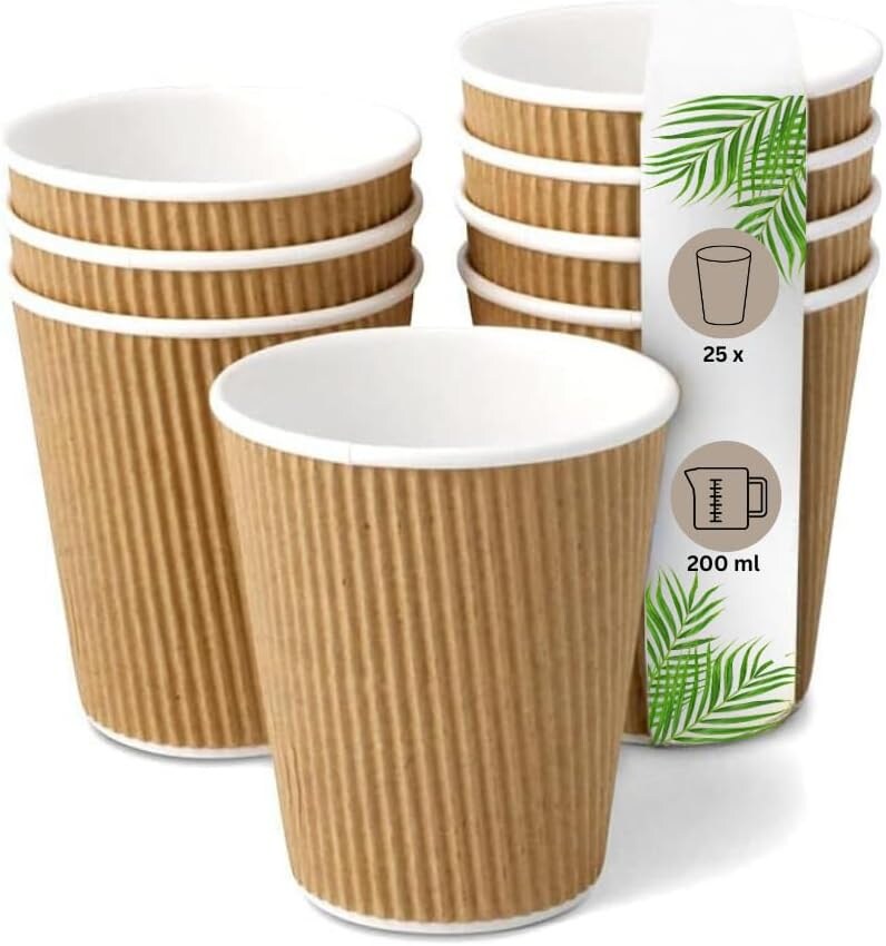 DeinPack 25 Riffelbecher 200 ml doppelwandig to Go Pappbecher aus braunem Kraftkarton Kaffeebecher