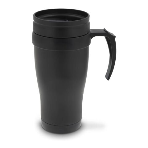 Werbeartikel 350 ml Coffee-to-go Thermobecher Kaffeebecher aus Edelstahl für Autohalter doppelwandig – schwarz – mit Logo bedruckt