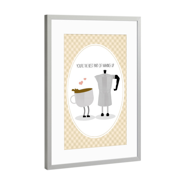 Poster mit Rahmen Silber "Kaffeekanne und Tasse" artboxONE - Typografie,Essen & Trinken,Liebe - Moka -topf,Kaffee,Frühstück