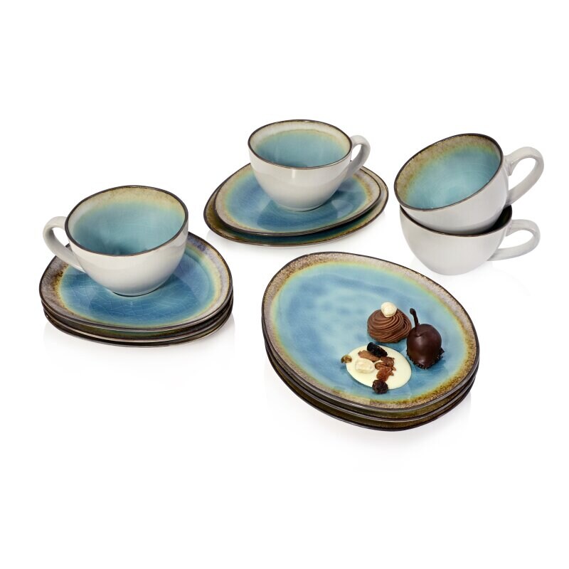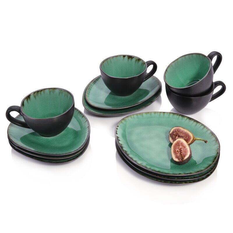 Gipfelstück Kaffeeservice 12-tlg für 4 Personen BLAU/GRÜN, postsicher, Serie TIEFER SEE