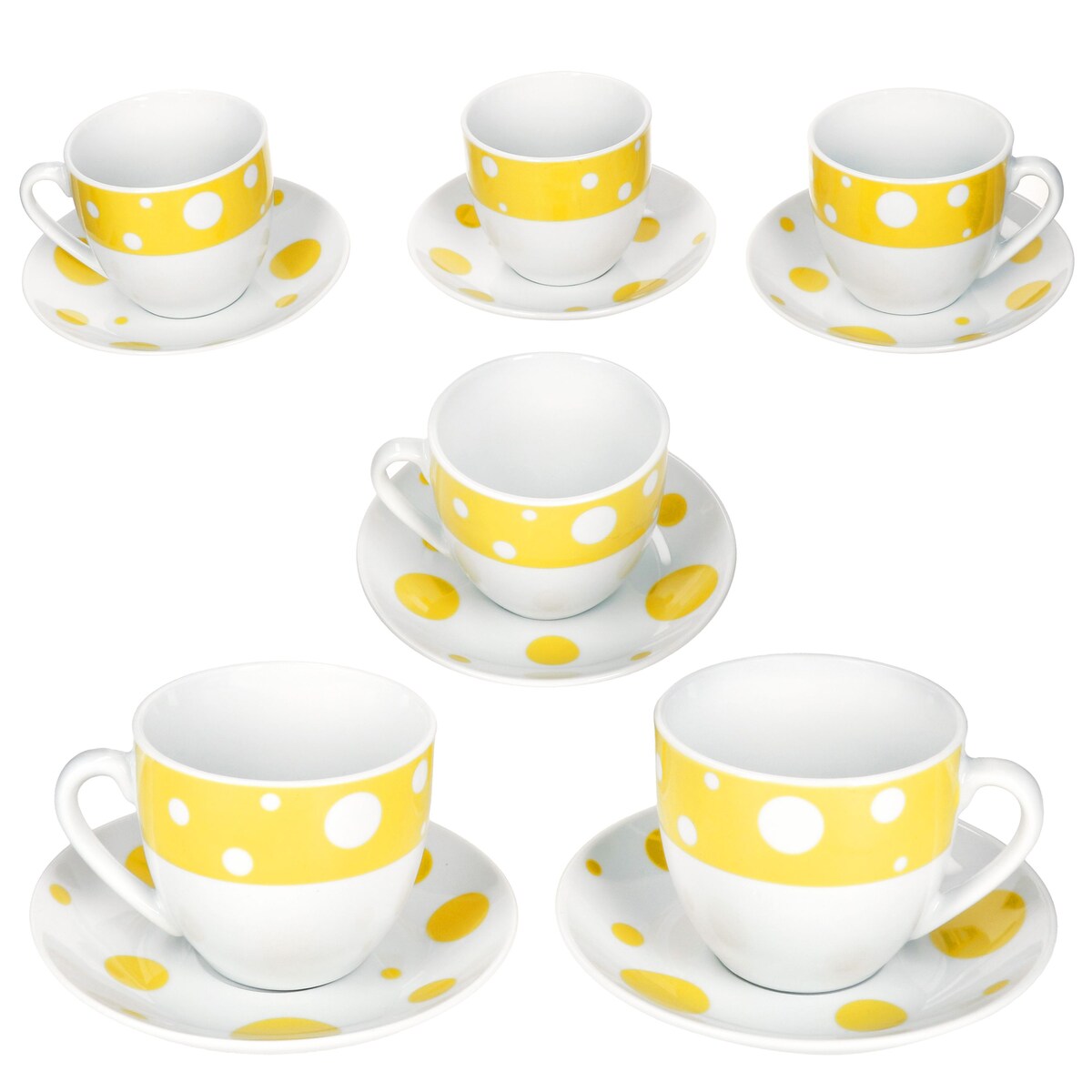 Pula gelb Kaffeetassen mit Untertassen für 6 Personen Porzellan Tee