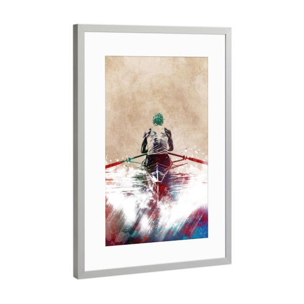 Poster mit Rahmen Silber "Kajaksport Kunst B" artboxONE - Sport,Sport / Sommerspiele - Sport,Kajak,Kajakfahren,Schwimmen,Rudern,Grafik