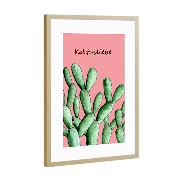 Poster mit Rahmen Gold "Kaktusliebe" artboxONE - Natur,Floral - Kaktus,Kakteen,Kaktusliebe,Aquarell,Blüte,Floral,Cactus,Typo